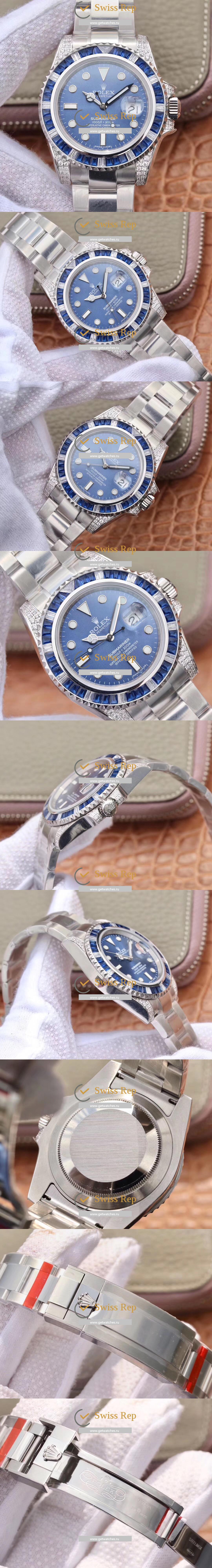 Bezel: Uni-directional Rotating Blue and White Diamond Bezel